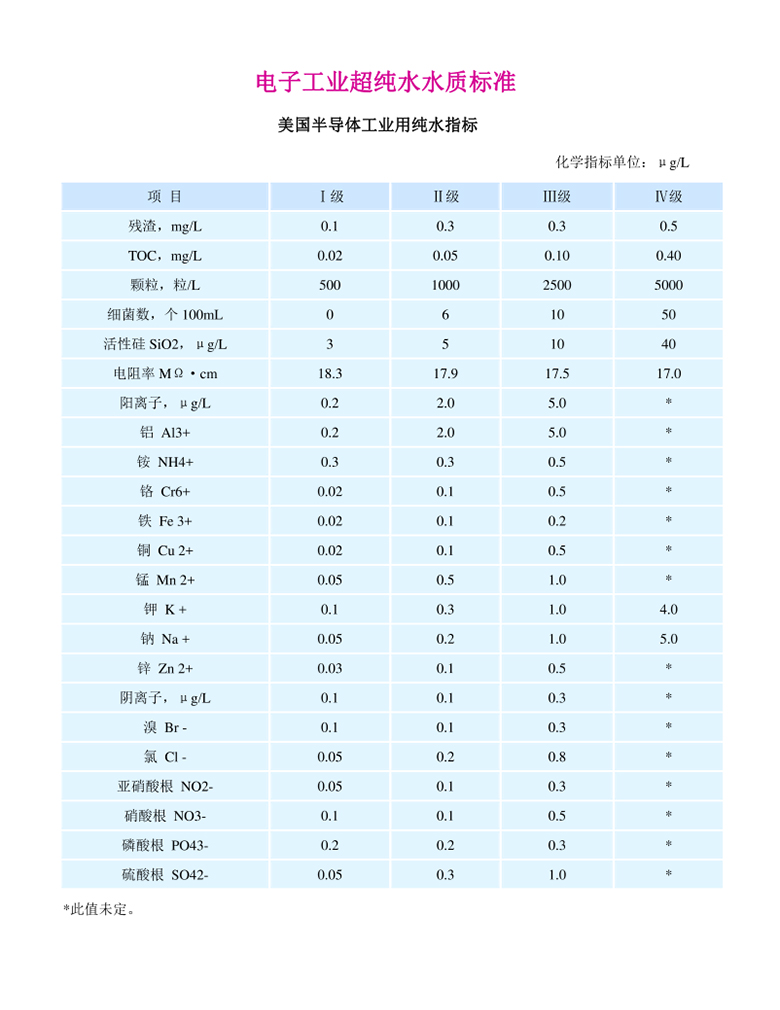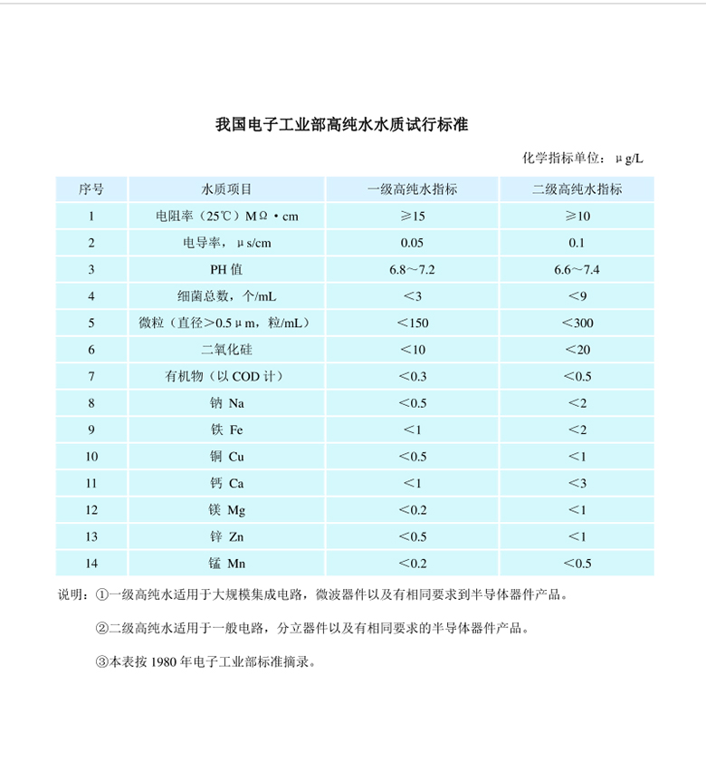 电子级超纯水水质标准